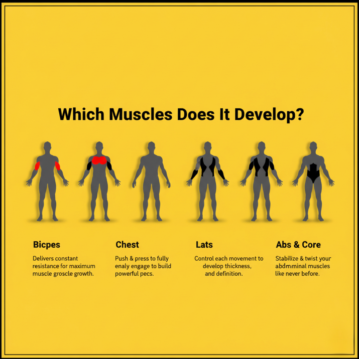Adjustable Resistance (8–10 lbs): Smooth, precision-tuned tension adapts to your strength level. Perfect for beginners and athletes alike.